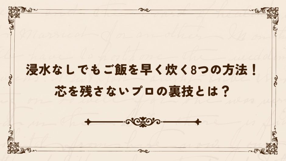 この記事では、浸水なしという厳しい条件下でも、可能な限り早く、そして美味しくご飯を炊くための具体的な方法を8つ紹介します。