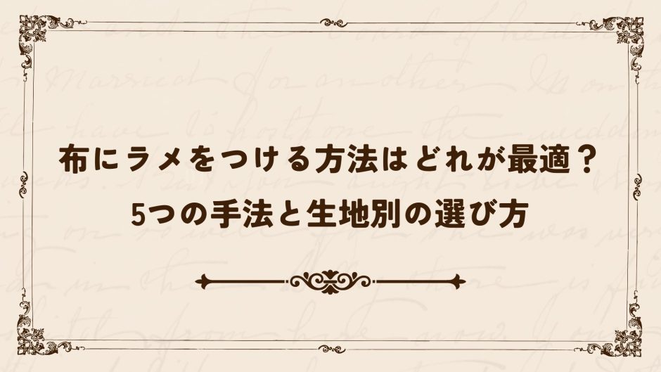 この記事では、布にラメをつける代表的な5つの手法を比較し、目的や生地に合わせた選び方をわかりやすく解説します。