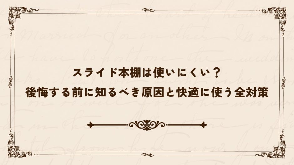 大量の本を省スペースで収納できる家具として人気のスライド本棚。しかし、実際に導入してみると「奥の本が取り出しにくい」「スライドが重くて動かない」「掃除が面倒」といった不満を感じ、使いにくいと後悔するケースは少なくありません。