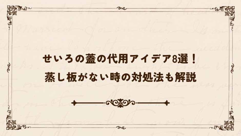 せいろを使って料理をしようとした時、蓋が見当たらなかったり、壊れてしまったりして困った経験はありませんか。また、せいろを鍋に乗せるための蒸し板がなくて、安定せずに悩むことも少なくありません。実は、専用の道具がなくても、キッチンにある身近なアイテムで十分に代用することが可能です。